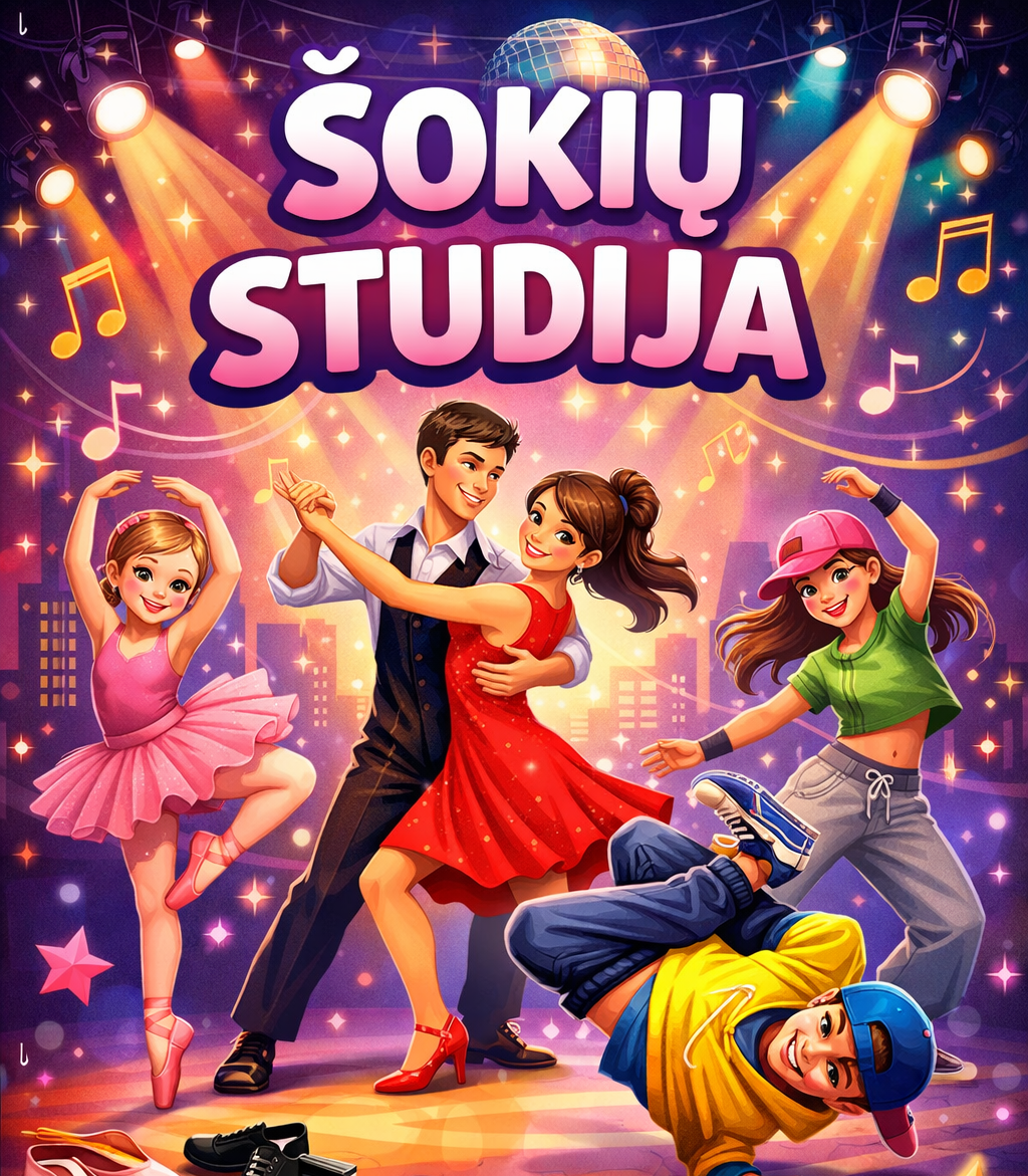Šokių studija – tai muzika, judesys ir energija, kuri padeda atsiskleisti kiekvienam mokiniui.